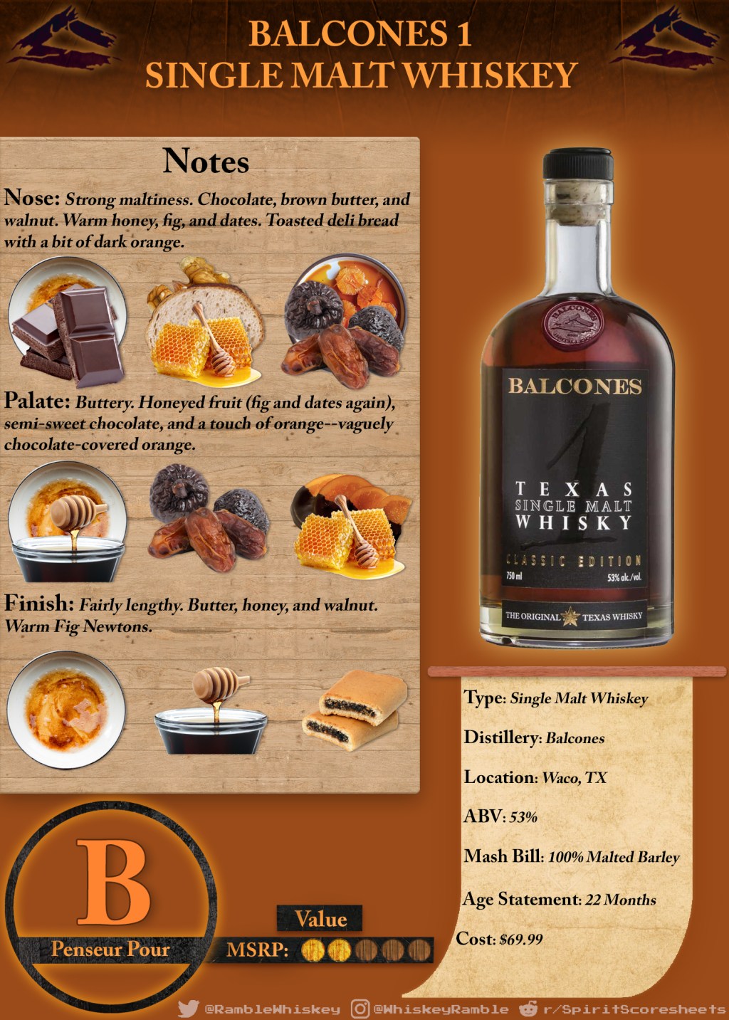 All that being said, Balcones “1” Single Malt loses some steam the more I sip it. I’d liken it to a chocolate that melts with textural richness but falls somewhat short in the flavor department. Still enjoyable, it just needs that final push to balance the entire experience out, potentially taking it to the next level. Maybe then the $70 price tag would feel a bit more warranted. It’s well worth trying since the experience is distinct compared to other American whiskeys, but even if you’re extra curious, I still wouldn’t suggest blindly buying a bottle.