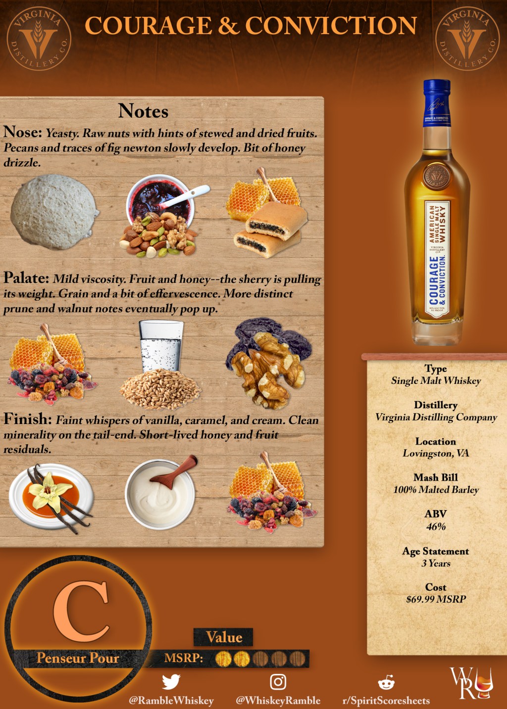 In any case, Courage & Conviction simply doesn’t scratch the itch I’m looking for, least of all for a $70 product. Even considering how new Virginia Distilling Company is to whiskey, that price tag is a tough pill to swallow for something that leaves me bored more than anything. I’d be interested in revisiting them 5-10 years down the line. Hopefully by then their portfolio matures and becomes more satisfying.